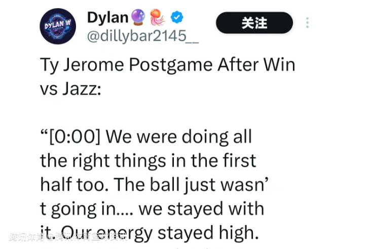 关于球队上半场的表现,杰罗姆说道:“其实在上半场,我们也做对了所有的事情。只是球怎么也投不进。但我们没有放弃。我们的能量一直很高,我们的斗志一直很旺盛。只要保持这些,最终事情总会好转起来。我们的自信,也一点点找了回来。
