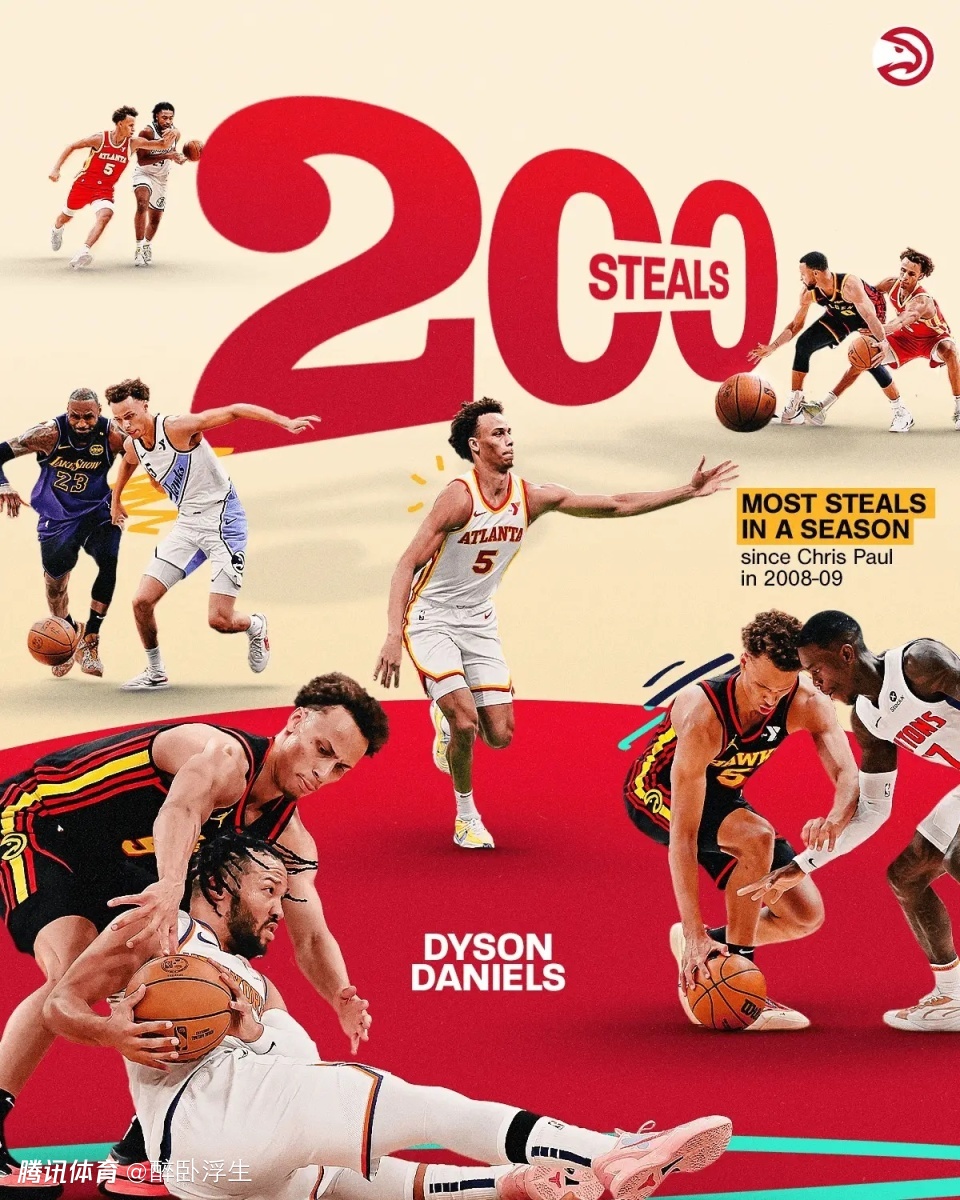 老鹰双杀76人特雷杨28+12 丹尼尔斯单季200抢断比肩巅峰保罗