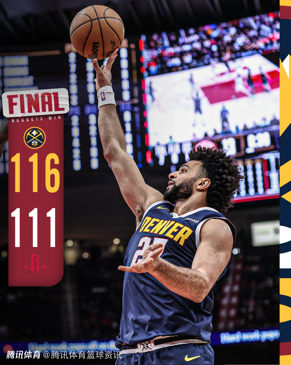 2025-03-24 10:10北京时间3月24日,NBA常规赛,掘金客场以116-111力克火箭,终结了对手的9连胜。