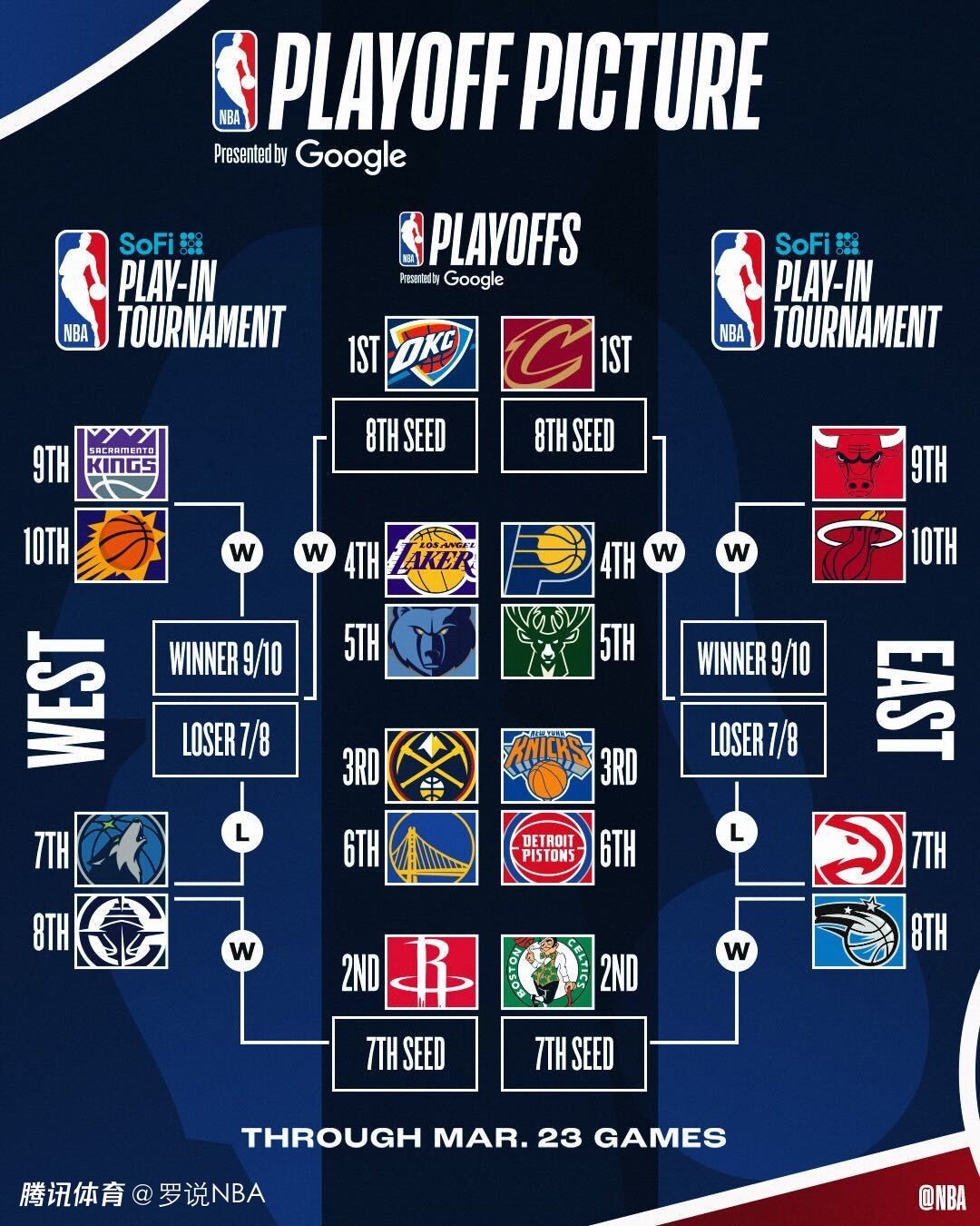 东部附加赛首轮:第7的老鹰对阵第8的魔术,第9的公牛对阵第10的热火