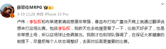 此外,李弘权一直有伤在身,这也是为什么过去几场比赛被控制出场时间的重要因素,李添荣上一场也爆发伤病困扰,具体需要医院检查之后才能有相关的评估。