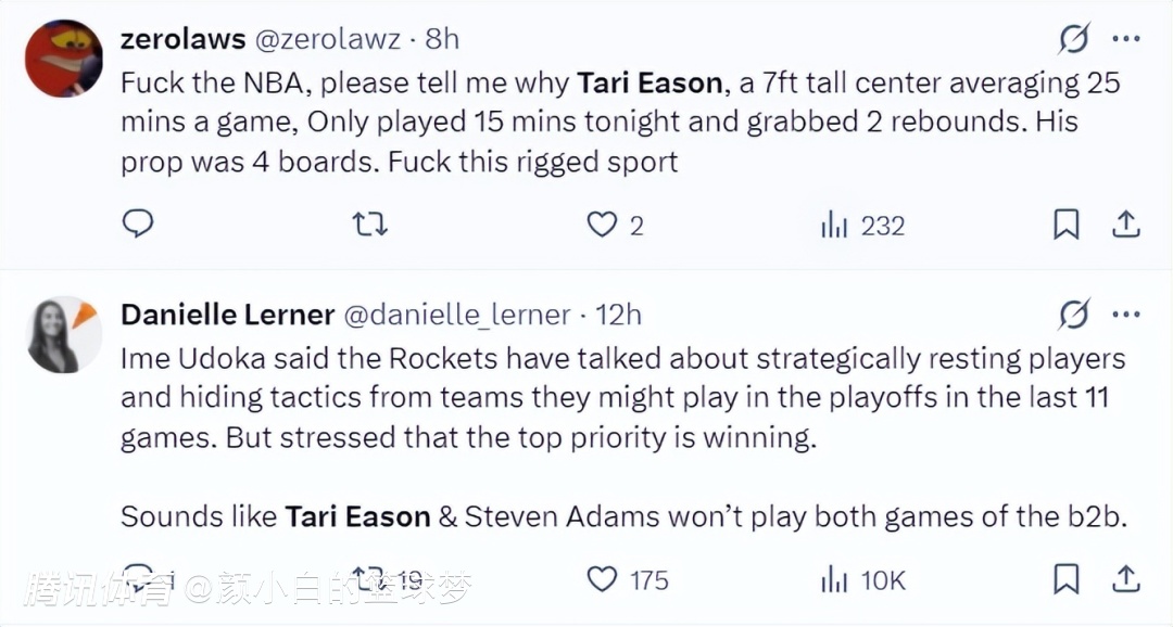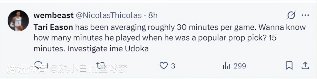 也有休媒表示:去TXM的NBA,为什么伊森只打了15分钟,这位顶级锋线场均有6.3个篮板这一场比赛才2个篮板,是什么人在操控NBA?