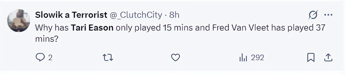 “为什么伊森只打15分钟,而范弗利特打了37分钟,乌度卡在干什么?”