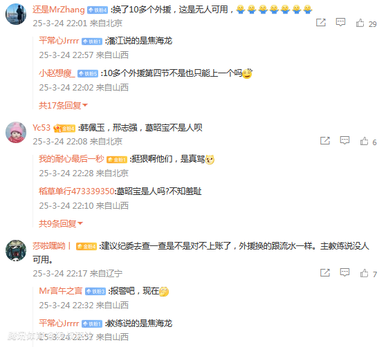 有球迷吐槽说道:换了10多个外援,这是无人可用。