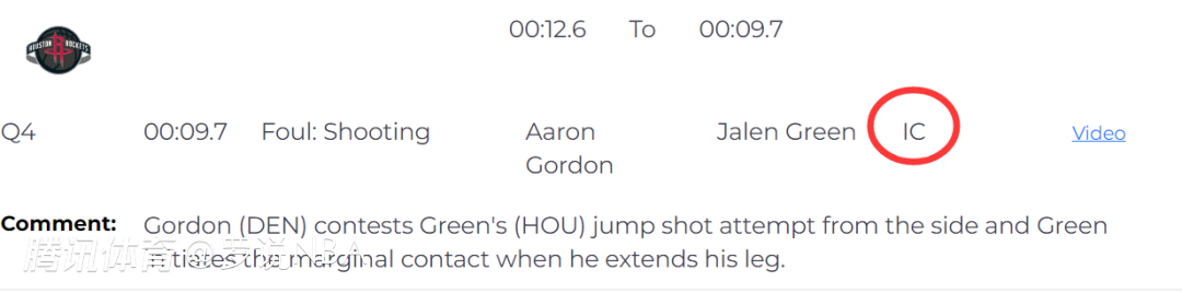 本场比赛最后两分钟的唯一一次错误判罚发生在距离比赛结束还有9.7秒,当时,火箭的杰伦-格林在底角极限出手三分球,裁判判罚戈登在防守时犯规,给了杰伦-格林三次罚球的机会。裁判报告指出,这是一次错判。戈登从侧面防守格林的跳投,格林在伸腿时造成了轻微的身体接触。这不是防守犯规,掘金吃亏,火箭获利。