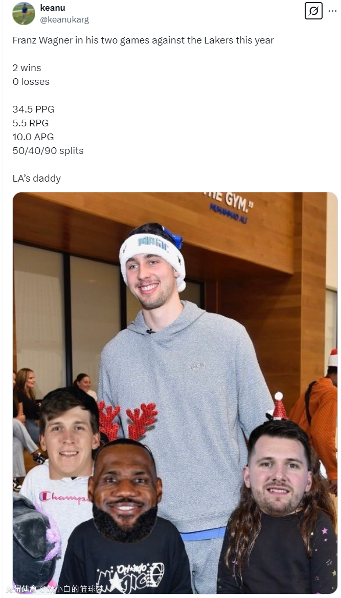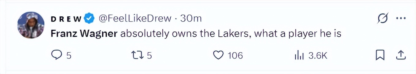 美媒:“小瓦格纳一直掌控着湖人,多么出色的的球员啊。”