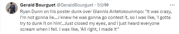 邓恩:能隔扣字母哥太疯狂 知道他会来封盖所以下决心要完成扣篮