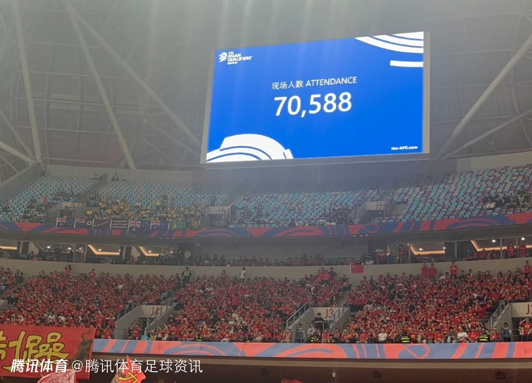 根据现场播报显示,本场比赛的现场上座人数达到了70588人,刷新了国足主场上座人数纪录。杭州奥体中心体育馆是杭州第19届亚运会的开闭幕式举办场地,拥有80800个固定座席,是国内座位数仅次于国家体育场(鸟巢)的大型体育场。