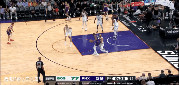 易边再战,邓恩三分命中,霍福德扣篮得手,理查兹补扣得分,霍福德2罚全中。两队交替取得进攻得分,分差始终在20分左右徘徊,杰伦-布朗和霍勒迪连续三分命中,两队分差重新回到25分。布克急停跳投,波尔津吉斯2罚全中,凯尔特人打出一波9-2高潮将分差扩大到30分以上。杜兰特三分命中,波尔津吉斯连得8分,琼斯和马丁连续三分回应,波尔津吉斯转身勾手,杜兰特三分命中。三节比赛结束,凯尔特人108-81领先太阳。