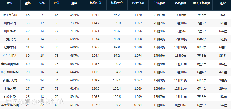 第二种:辽宁、山东、新疆都是32胜(新疆最后两轮全胜,北京最后一轮败)
