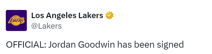湖人官宣一签一裁:古德温转正获季后赛资格 东皇领衔15+2阵容冲冠