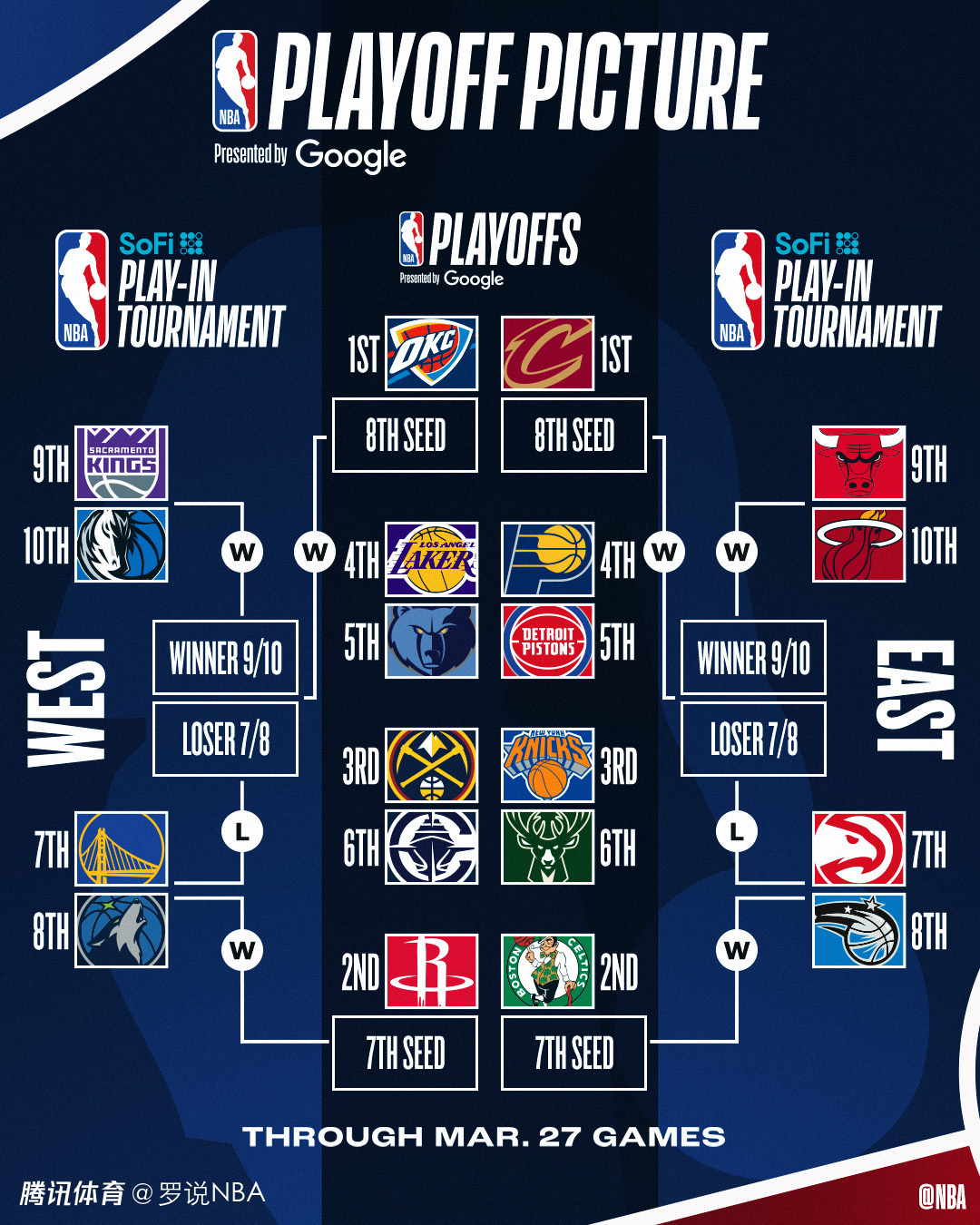 西部附加赛首轮:第7的勇士对阵第8的森林狼,第9的国王对阵第10的独行侠