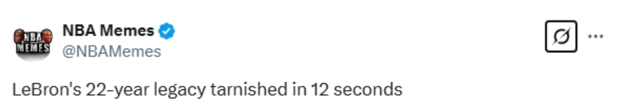 赛后美媒NBA Memes统计,公牛最后4个三分球全部跟詹姆斯有关,并称詹姆斯22年的传奇12秒就毁了。