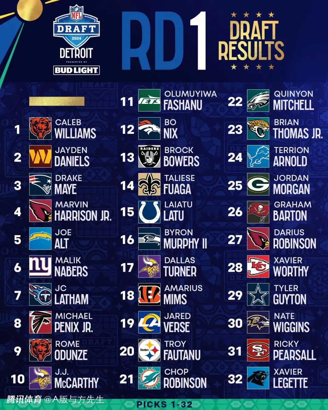 2025-03-28 16:401、熊队:凯勒布-威廉姆斯,四分卫,南加大
