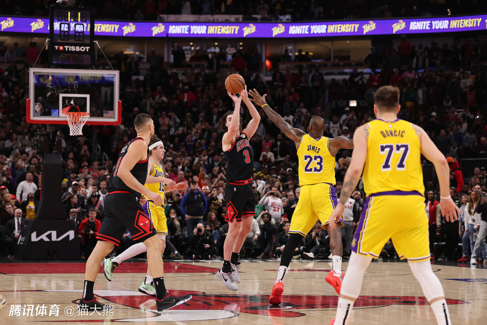 湖人117-119惜败给公牛,詹姆斯20投8中,其中三分球5投0中,得到17分5篮板12助攻2抢断,这是他生涯第8次三分球5+投0中,打出15+5+10,超越东契奇和威斯布鲁克(各7次),刷新NBA历史纪录。
