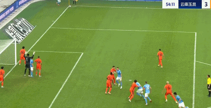 第54分钟,深圳新鹏城开出右侧角球,门前的杜加利奇抢到落点头球攻门,但被马镇将球扑出。