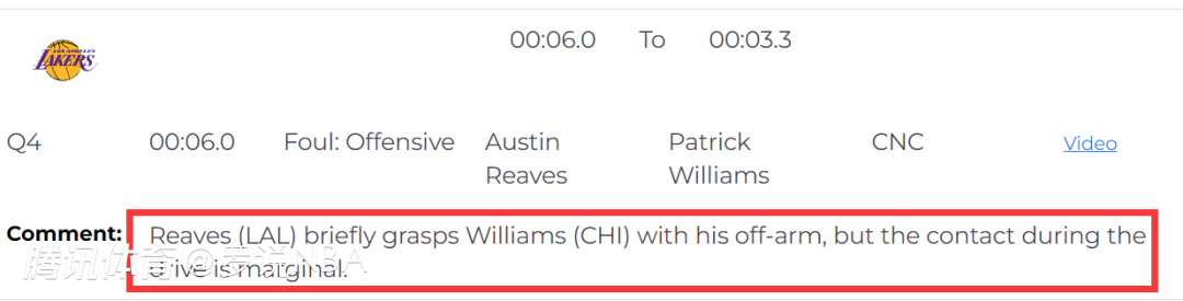 距离比赛结束还有6秒时,里夫斯突破帕威防守时,曾用非持球手短暂拉住帕威,但裁判报告指出这种身体接触是轻微的,没有达到进攻犯规的级别,因此裁判没有响哨也是正确的。