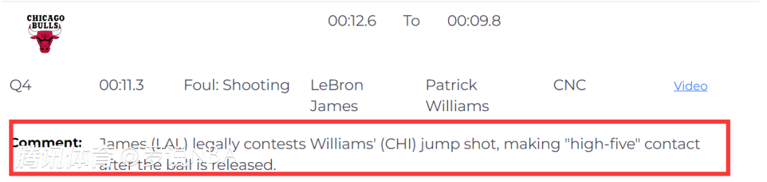 距离比赛结束还有11.3秒时,帕威在底角三分出手命中,当时詹姆斯飞身尝试干扰,在帕威出手后,詹姆斯打到了他的手,但这是合规的“击掌”式接触,裁判没有响哨是正确。