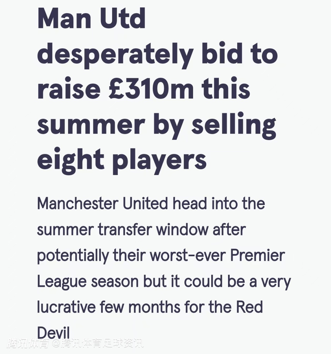 超市开张!镜报:曼联今夏拟甩卖8名球员 筹措3.1亿英镑购买新援