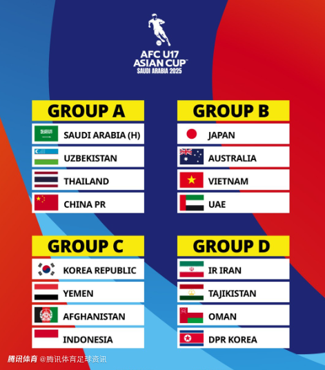 本届U17男足亚洲杯,中国U17队与东道主沙特U17队、乌兹别克斯坦U17队以及泰国U17队同分在A组。赛程显示,中国U17队将于当地时间4月3日晚迎战U17亚洲杯小组赛首个对手沙特U17队。