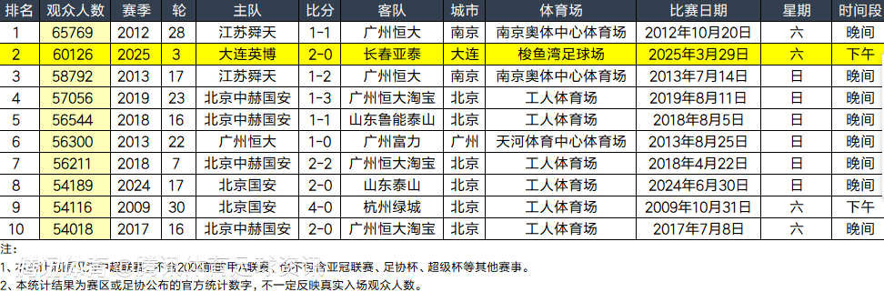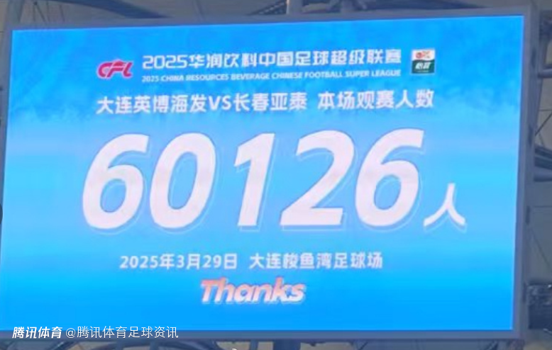 2025-03-29 18:10北京时间3月29日,中超联赛第3轮比赛继续进行,大连英博主场2-0完胜长春亚泰,取得队史中超首胜!赛后,根据德转管理员朱艺发布的消息显示,本场比赛吸引了60126名观众现场观战,是中超历史第二。