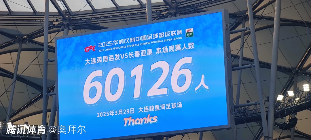 对长春亚泰一战,是大连英博的中超主场首秀,足足60126人来到现场观战,创造本赛季中超上座率纪录。