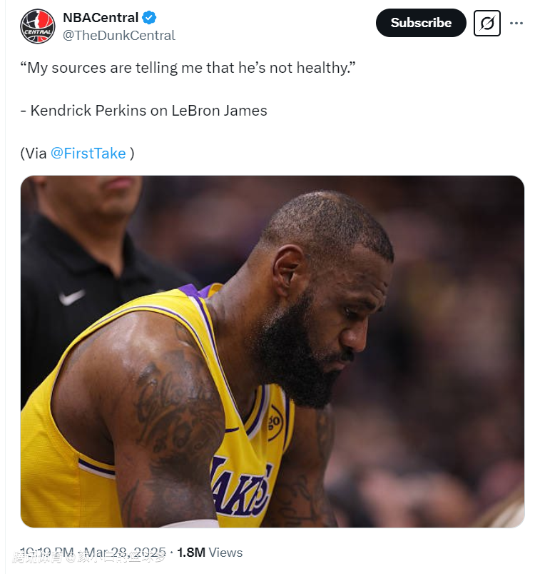 根据ESPN评论员帕金斯的报道,有消息人士告诉我,勒布朗-詹姆斯的身体状态并没有完全恢复。