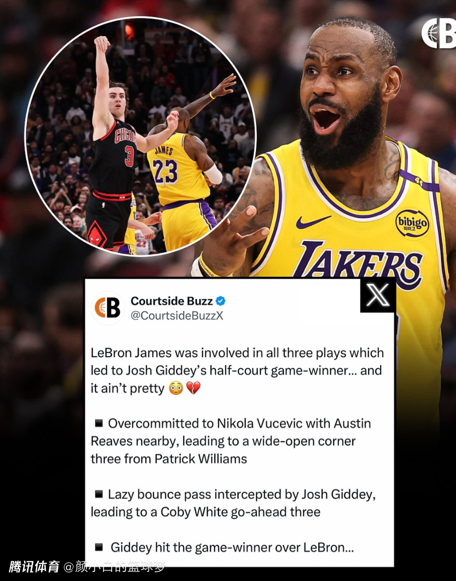 2025-03-29 19:50勒布朗-詹姆斯是湖人被公牛绝杀的罪魁祸首,终场前12.6秒湖人都还领先公牛5分,结果詹姆斯漏防帕威丢了三分,随后又被吉迪抢断送了怀特三分反超,终场前1秒吉迪是迎着詹姆斯绝杀三分命中,如果詹姆斯是领防吉迪就不会出现这个读秒绝杀。