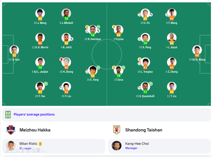 前锋:10-罗德里格(F)(55’9-迈克尔-舍库瓦(F))、16-杨超声(70’5-田子羿)。