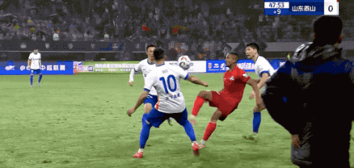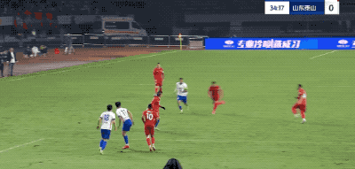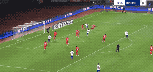 第10分钟,山东泰山连续围攻,看到彭欣力起脚远射,泽卡下意识一挡,皮球偏出球门。