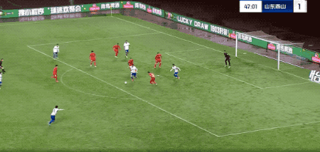 上半场最后时刻,陈蒲高速前插抢在皮球出界前救回并传中,卡扎伊什维利停球转身射门一气呵成,泰山扳回一城。