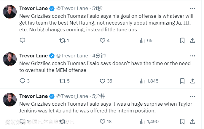 2025-03-30 07:30北京时间3月30日,NBA常规赛继续进行,灰熊将对阵湖人。赛前,灰熊临时主帅伊萨洛接受媒体采访谈及球队备战情况。