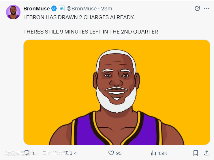 第二节勒布朗制造了第二个进攻犯规,40岁的勒布朗球商还是联盟最顶级,次节老詹8中4+三分2中1拿到9分3助攻1抢断,半场老詹14分1篮板4助攻2抢断,三分4中2已经是过去五场比赛中最好的,之前四场他三分命中率只有7.7%。