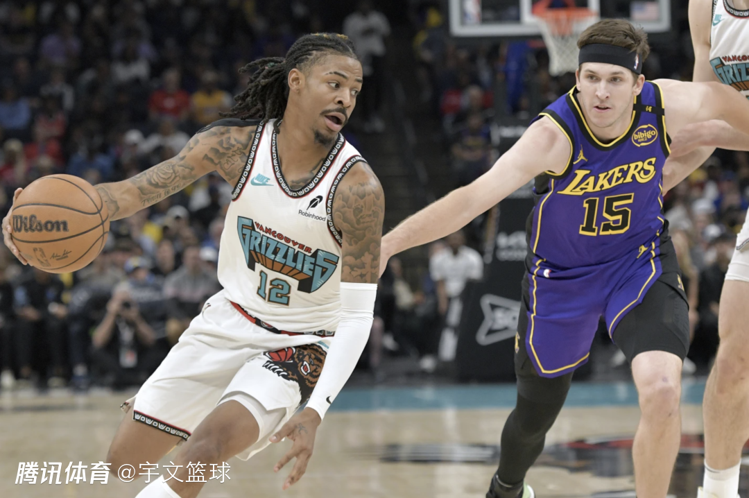 末节,小贾伦-杰克逊扣篮,莫兰特中投命中,灰熊反超1分。八村垒三分命中,小贾伦-杰克逊连进两球,莫兰特上篮再中,伊迪补篮命中,詹姆斯连得4分,阿尔达马中投得分,双方再次战平。东契奇中投命中,芬尼-史密斯三分命中,威尔斯连得4分,海耶斯空接扣篮。詹姆斯、里夫斯连续罚球得分,威尔斯补篮命中,八村垒空接命中,里夫斯打成2+1。小贾伦-杰克逊三分命中,灰熊使用犯规战术,但湖人最终还是客场拿下胜利。