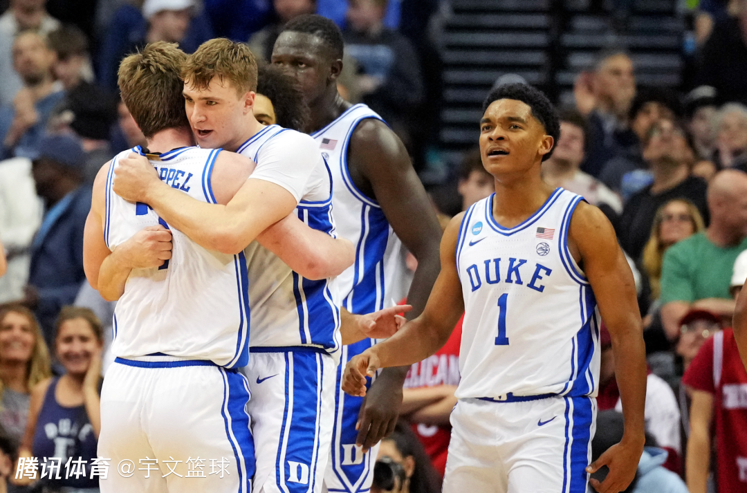两队展开精英八强的焦点战役,尽管状元大热弗拉格进攻手感不佳,全场只有16中6,但非常擅长进攻的阿拉巴马被杜克以窒息式防守全方位压制,阿拉巴马头号得分手西尔斯更是只有12中2,全队仅35.4%的投篮命中率可以说是集体低迷。杜克从上半场开始,就牢牢将主动权把握在自己手中,并在下半场进一步扩大领先优势,两队逐渐突破20大关,比赛变得毫无悬念。最终杜克狂胜阿拉巴马晋级,蓝魔时隔3年再次挺进四强,同时是队史第18次闯入四强。