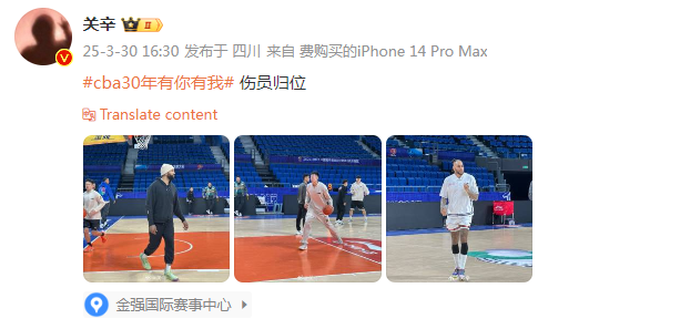 2025-03-30 21:50媒体人关辛在社媒上晒出广东男篮的训练照,此前受伤的吉伦沃特和王少杰两大内线已经出现在训练场。