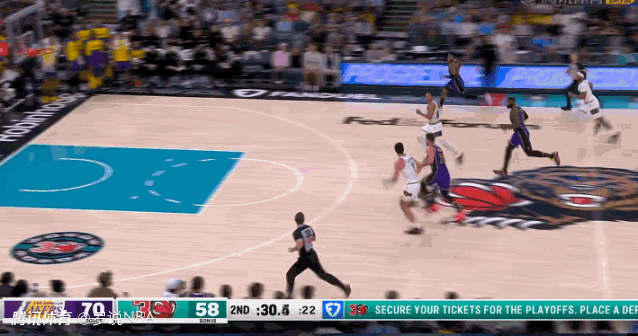 比赛中,东契奇不看人背后传球,找到詹姆斯,后者完成了一记势大力沉的快攻扣篮。真正引人注目的是扣篮之后发生的事——当詹姆斯高高跃起完成扣篮时,东契奇转向镜头,目光专注地凝视着,而他的队友在他身后将球狠狠砸进篮筐。