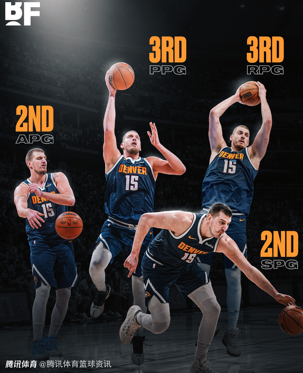 历史首人!约基奇分板助断四项数据均为联盟前三 此前从未有人同时跻身前十