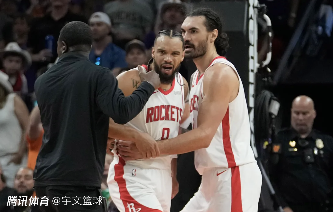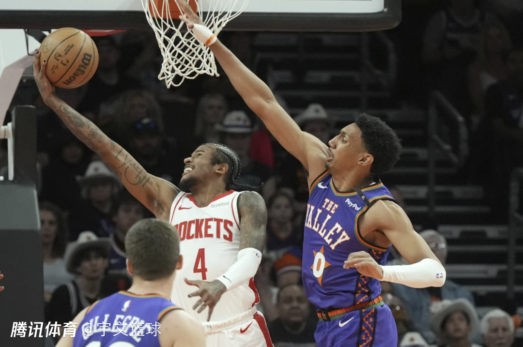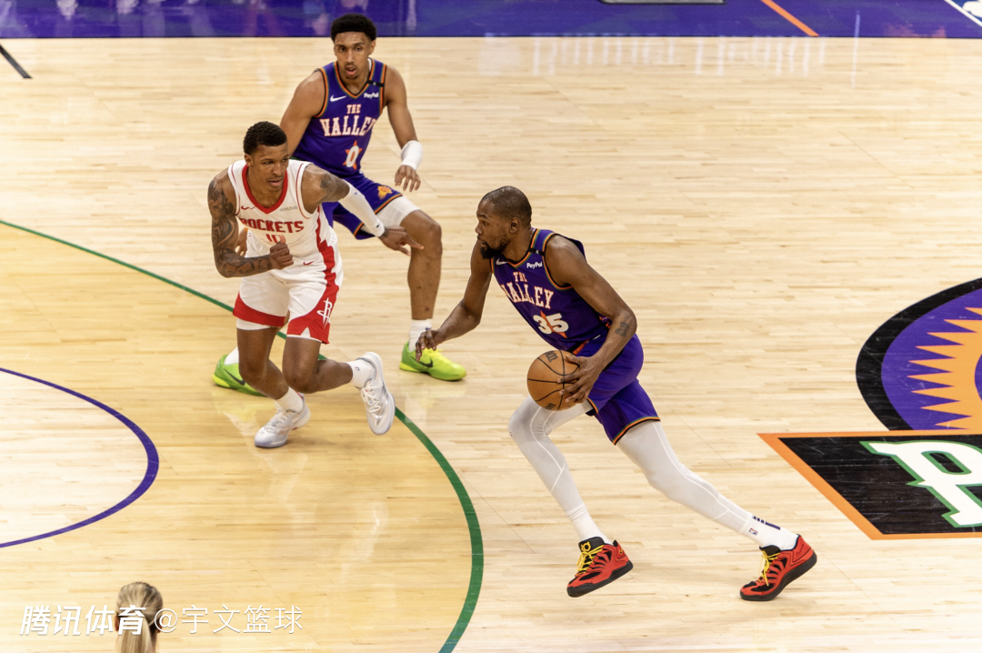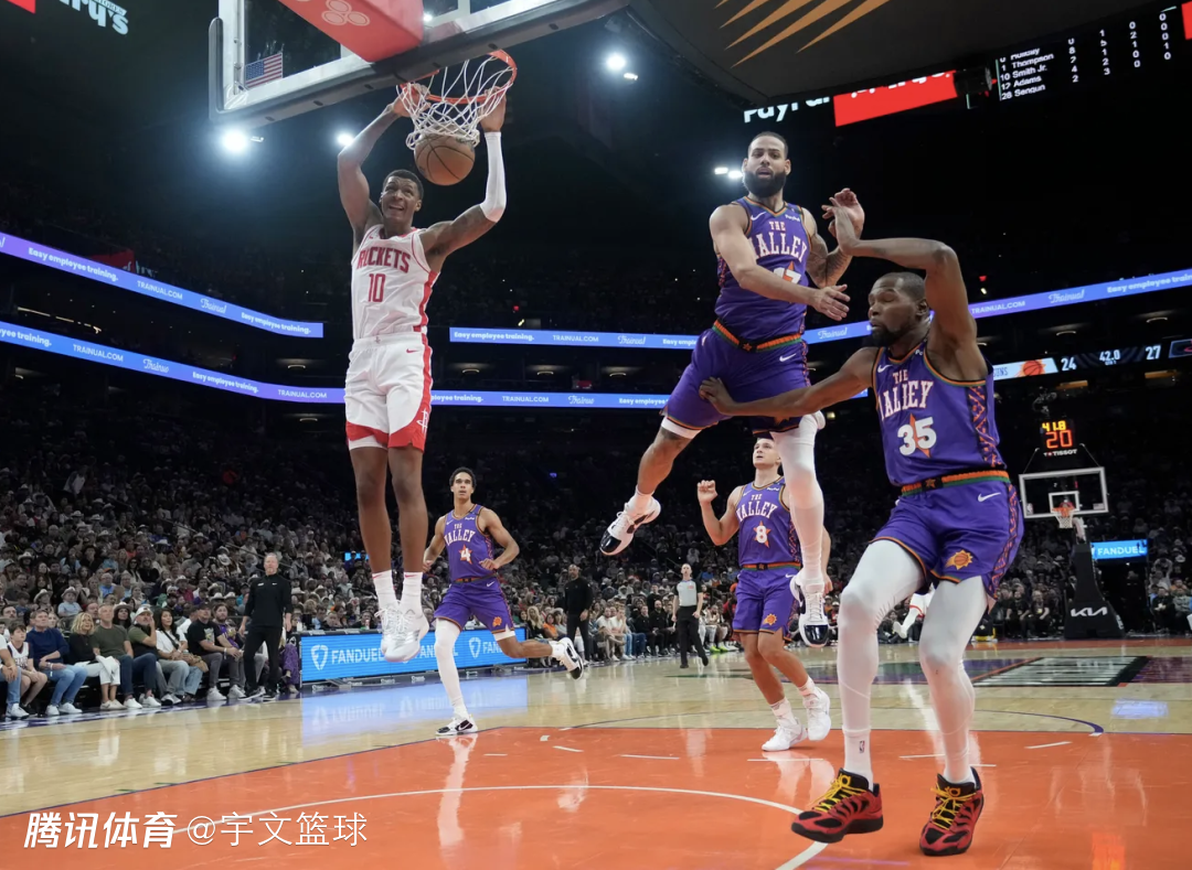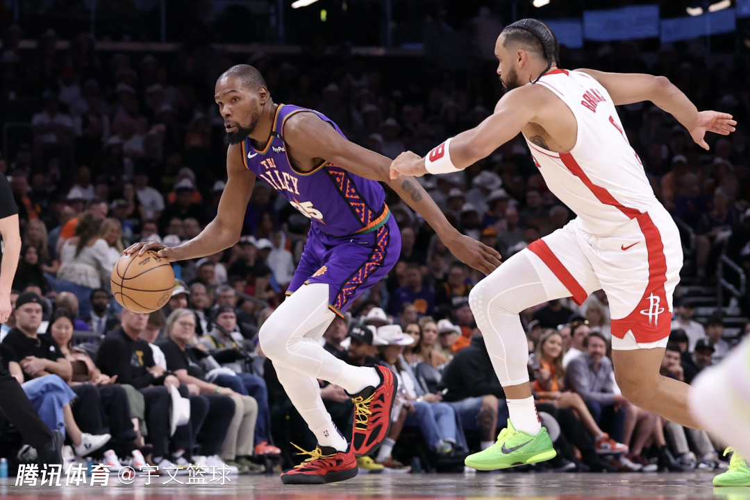狄龙被驱逐,杜兰特90度崴脚伤退,火箭8人上双狂胜太阳39分,赛季三杀对手完成横扫。