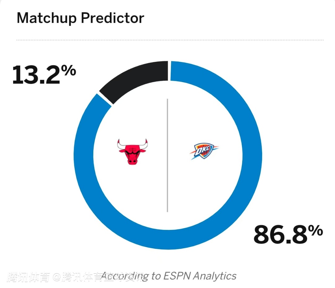 雷霆86.8%,公牛13.2%