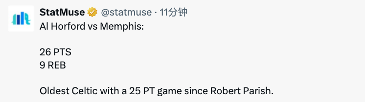 2025-04-01 10:10北京时间4月1日,NBA常规赛,凯尔特人客场以117-103力克灰熊,此役老将霍福德迎来爆发,拿到全队最高的26分。