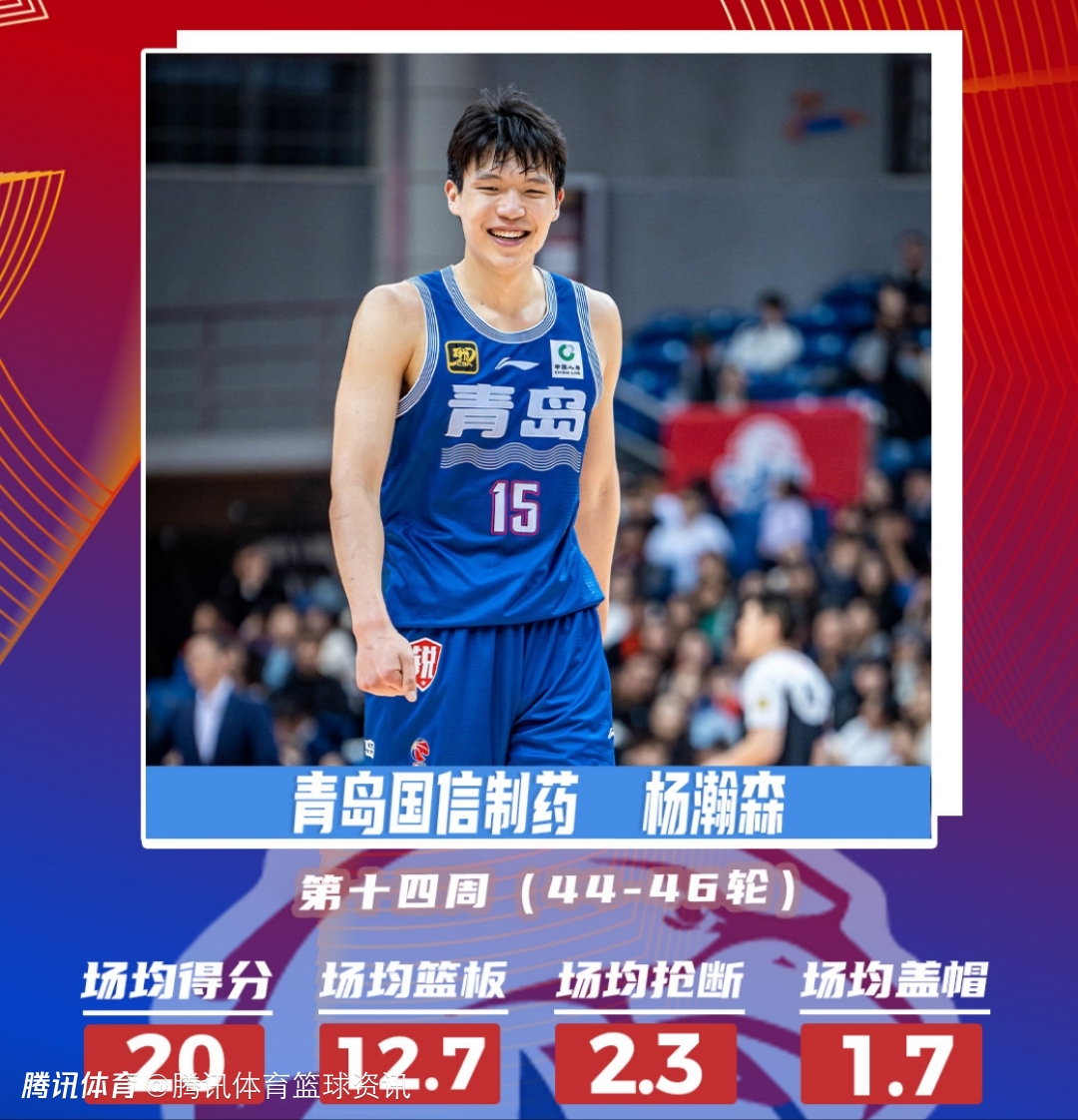 青岛国信海天篮球俱乐部球员杨瀚森本周出战3场且球队取得全胜,他场均出场31分钟的时间里能够得到20分、12.7篮板、2.3抢断、1.7盖帽的全面数据。杨瀚森也凭借自己在攻防两端的优异表现帮助球队以一波6连胜收官常规赛,最终青岛国信制药位列常规赛第八位。