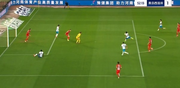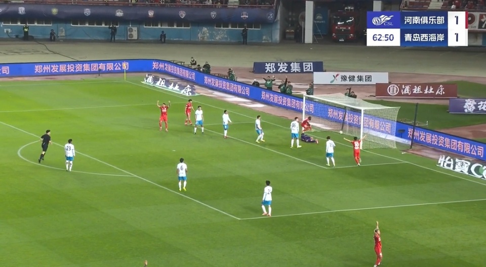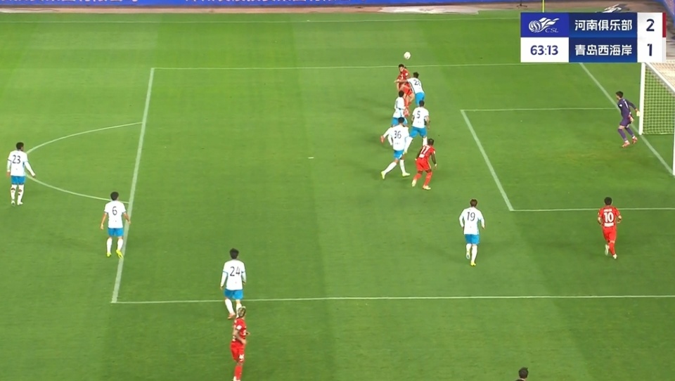 第63分钟,河南队再度领先,纳萨里奥策动攻势,他随后在右路送出传中,费利佩-卡多索头球摆渡,阿奇姆彭头球接力破门,河南队2-1领先青岛西海岸。