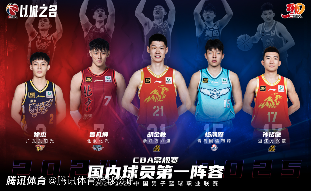 在稍早前CBA官方公布的国内球员最佳一阵名单,曾凡博和胡金秋、杨瀚森、徐杰、孙铭徽一同入选。