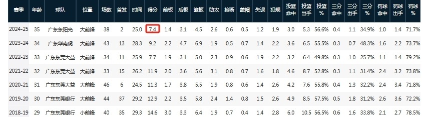 新赛季场均7.4分4.5篮板已经是任骏飞过去7年的新低,也是毫无疑问处于转型的状态。