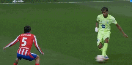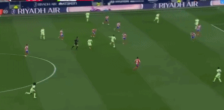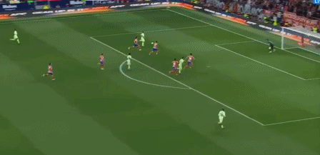 21分钟,亚马尔直传,佩德里脚后跟传球,马竞解围失误,拉菲尼亚射门被封堵。