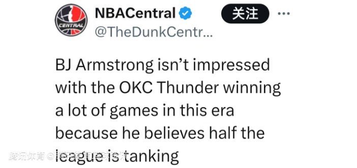 公牛三冠后卫质疑雷霆战绩含金量:半数球队在摆烂 比赛胜利价值大打折扣