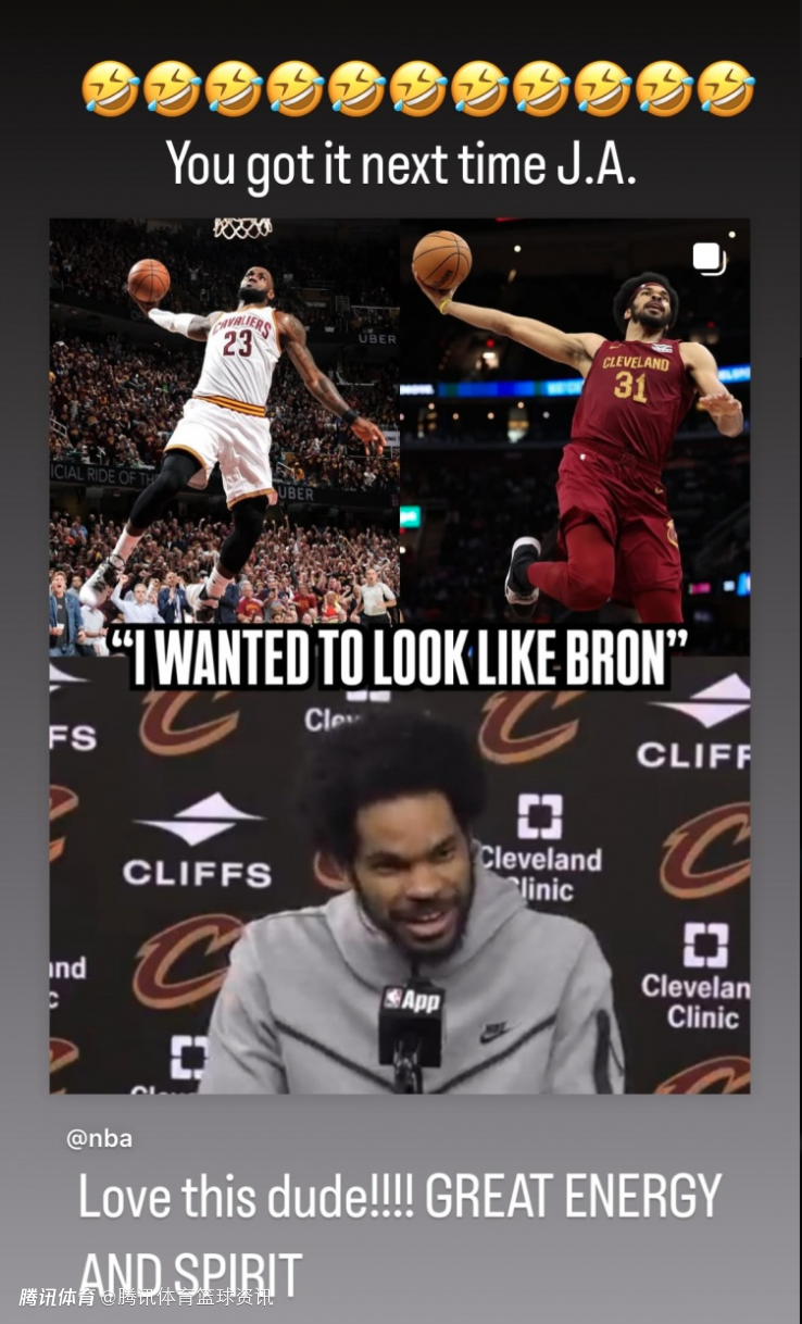 艾伦表示:“我本来想模仿詹姆斯的扣篮动作,但看完回放后发现差得太远了。”随后詹姆斯也更新了IG动态,并且配文写道:“下次你一定能行,超爱这家伙,能量爆棚,斗志冲天。”