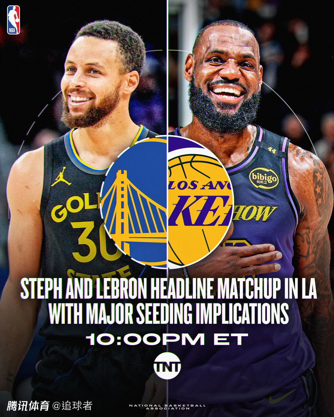 湖勇四番战,此前三次交手都是湖人获胜,今日对决是一场十分关键的排名卡位战,湖人46胜29负排在西部第三位,勇士44胜31负排在西部第五,两队仅仅只差2个胜场。