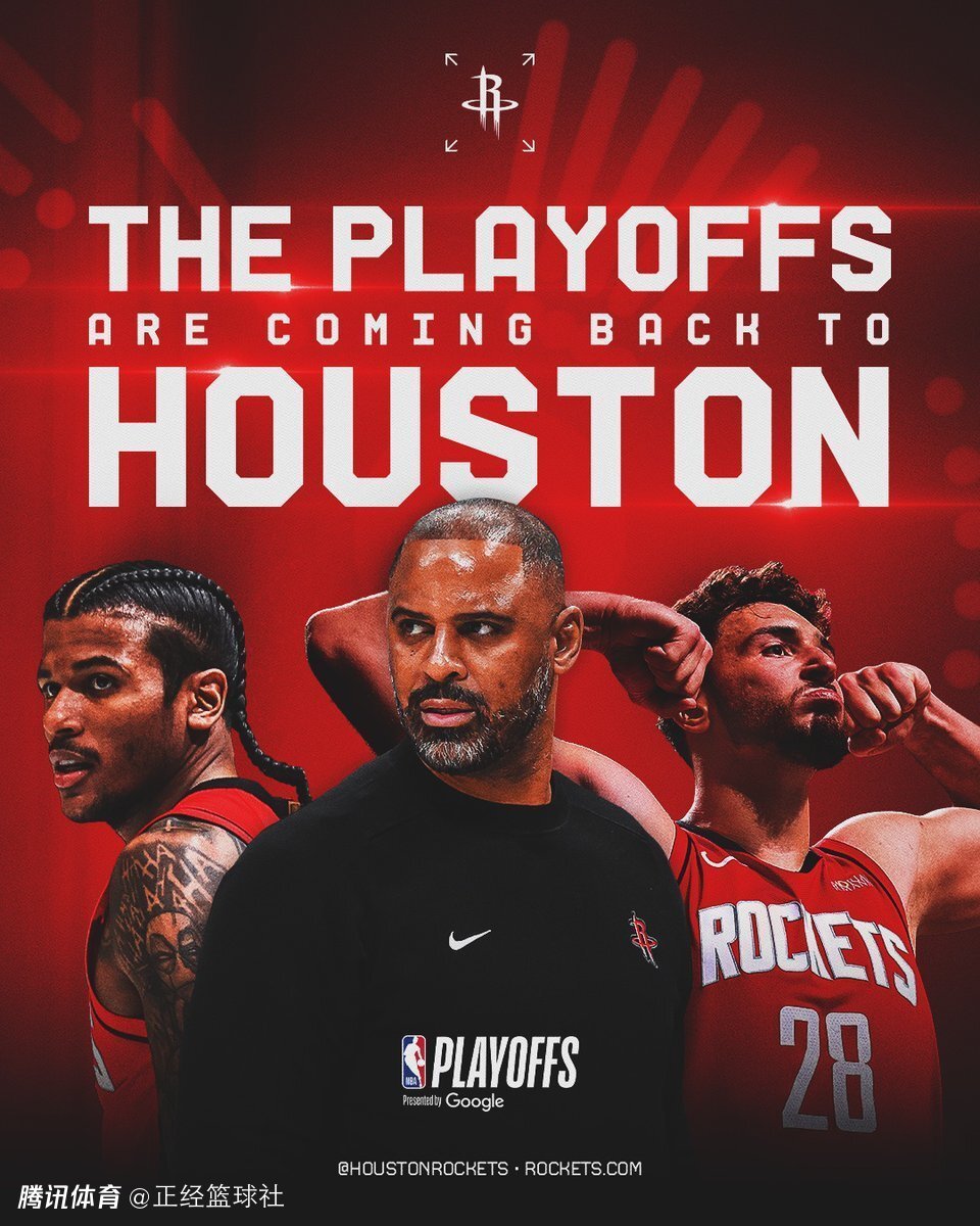 目前火箭队战绩为50胜27负,已经确定提前锁定一个西部季后赛名额。这是火箭队史自从2020年至今,也是哈登离队后至今,首次进入季后赛。在火箭队官方发布的庆祝重返季后赛的海报中,主帅乌度卡、球员杰伦-格林和申京登上了封面,火箭队官方配文写道:“我们回来了!”